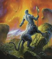I quote from the passage in which the centaur-like Jovian hero of Three Worlds to Conquer. comes across a volcano or "fire-pot":