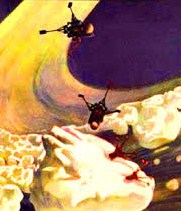 Zendexor: Though in both stories, luckily for mankind, the monsters seem restricted to a particular haunt. Schmitz's "Searcher" lives in a nebula; Jones' white mist-creature seems confined to Saturn's Rings. Tough luck, though, on those who encounter them...